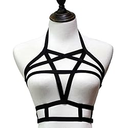 Jelinda Women Bra Harness Sexy Lingerie Elastic Pentagram Caged Bra Strappy Bralette Gothic Cupless Crop Top (Y003)