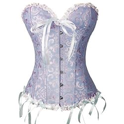 Newleaves Wending Sexy Blue Overbust Corset Burlesque Basque Lingerie with Thong Size 8-10