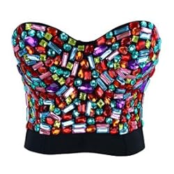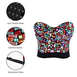 This Sassy Bustier Top Exclusive Features Colorful Rhinestone Throughout the Cups and Front, Adjustable and Detachable Shoulder Straps, Thong not included.About Material Spandex 82% Nylon 18%Guide to Choose the Right Size The Size Chart Above is Measured of the Bustier, NOT YOUR BODY SIZE. Please Measure your Size Before Order, and Choose the Right Size Above that Fit you. Bustier Top is In Order to Make A More Slender Body, Please Don’t Compare with the General Clothes’ Size.About Size Chart Size Chart(cm) S/Waist:54-56.5 cm, Length:23.4 cm M/Waist:58-60.5 cm, Length:24 cm L/Waist:62-64.5 cm, Length:24.5 cm XL/Waist:66-68.5 cm, Length:25 cm 2XL/Waist:70-72.5 cm, Length:25.5 cm Size Chart(inch) S/Waist:21.5-22.5 inch, Length:9.3 inch M/Waist:23-24 inch, Length:9.5 inch L/Waist:24.5-25.5 inch, Length:9.7 inch XL/Waist:26-27 inch, Length:9.8 inch 2XL/Waist:27.5-28.5 inch, Length:10 inch Due to Manual Measurement, Please Allows 1-3(cm) Deviation. The Real Color of the Item may be Slightly Different from the Pictures Shown on Website Caused by Many Factors such as Brightness of Your Monitor and Light Brightness.