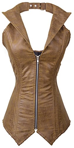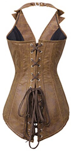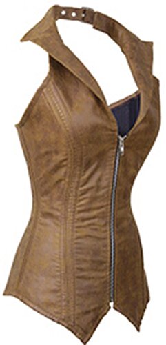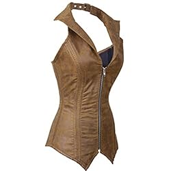Women’s Retro Corset Vest, with Adjustable Buckles Halter V-neckline, Turn-down Collar Design, W Shape Hemline Looks Sexy and Cute