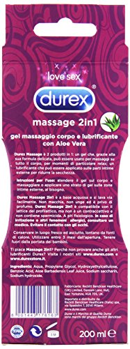DUREX MASSAGE 2 IN 1 ALOE VERA Gel body and lubricant gel with classic Aloe Vera. Format 200 ml tube. Cod. 8066397