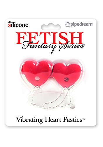 Give your breasts a discreet buzz and look great while youre doing it with the incredible Fetish Fantasy Series Vibrating Heart Pasties. Made from super soft and stretchy Elite Silicone, these pretty pasties feature a pair of tiny micro motors that tickle, tease, and please your most sensitive areas! Hidden on the backside of each heart shaped pasty is a powerful mini bullet that delivers whisper quiet vibrations that will whisk you away. You won’t just look good wearing them, you’ll feel great too, especially knowing that the discreet buzz is only your little secret.The small silicone opening stretches to fit snugly around your pert nipple, while a small chain dangles to add increased stimulation with each movement. The motors on each bullet easily switch off when you’re done with the fun, and FREE batteries are included so you can enjoy your new breast charms immediately out of the package.