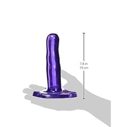 This impressive strap on set is fully adjustable and ready to dish out a serious pounding! The dildo has a wide, flat base, with easy to use notches that you thread the straps through. This simple system allows the dildo to be anchored firmly in place, with no slipping or coming loose. The nylon straps can easily be cinched down with the double D-ring buckles, and the attractive T-back design runs between the legs to offer a little more sensation as the strap cradles your clit with every thrust. Slick, rounded, and slightly curved, the dildo is gently ribbed to offer incredible pleasure as you penetrate your partner over and over. Measurements: Dildo: 7.5 inches in length, 1.75 inches in diameter; Harness: Fits waists up to 46 inches in circumference. Material: PVC, nylon, metal. Color: Purple