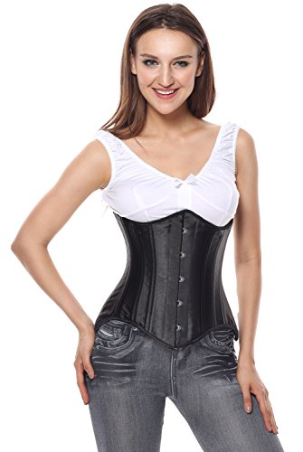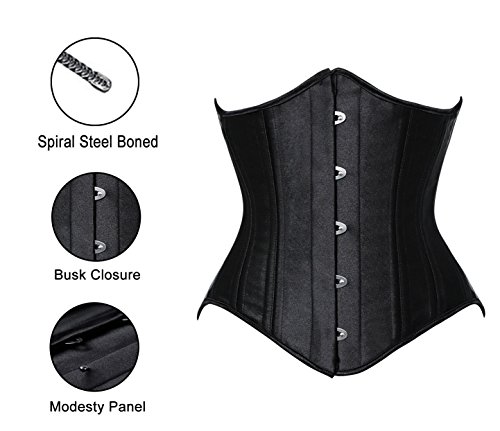 Women’s Classic Satin Underbust Corset, Attached 26 Steel Boned for Perfect Hourglass Figure, Heavy Strong Busk Closure in Front, Cord Lacing in Back for Cinching, G-string not included. It can be used for Tight Lacing, Shaping or Waist Training.