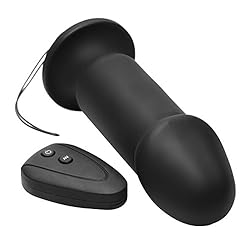 This phallic shaped vibrating plug has powerful vibration and an ample size to fill them up. Control the 10 sizzling vibration patters with the wireless remote, which works up to 25 feet away. The smooth silicone is non-porous and easily sterilized, with a handy retrieval cord at the base. The semi-flexible top is soft enough for comfort while being hard enough for incredible stimulation and easy insertion. Measurements: 8 inches in total length, 6.5 insertable, 1.85 inches in diameter. Material: Silicone, ABS. Color: Black. Note: Requires 1-23A and 2-AAA batteries, included