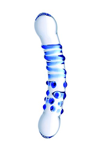 This gorgeous glass dildo is double-ended for your endless pleasure! Experience both sensual textures when you play with this incredible erotic stimulator. Two round, bulbous tips allow you to choose which smooth end you would like to slip into yourself, or your lover, before feeling the delicious delights of the raised swirls or the elevated nubs. Slightly curved, this device is perfect for rocking against those sensitive spots that will make your toes curl. Great for temperature play, you can heat or cool this luxurious material in hot or cold water for a unique experience that will take you to greater heights of bliss. The non-porous glass is easy to clean and sterilize, shatter resistant, non-allergenic, and compatible with any lube of your choosing. Measurements: 5.5 inches in total length, 5 inches insertable, 1 inch at widest point. Material: Borosilicate glass. Color: Clear.