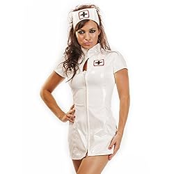 Give someone a heart attack in this sexy nurses uniform with full length front zip, medical badge and matching cap