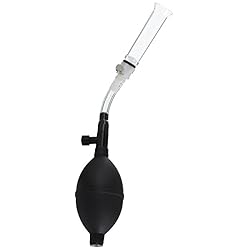Use this pump to increase sensation in your clitoris, or even your nipples, enhancing pleasure! Place the cylinder over your desired erogenous zone and squeeze the hand pump to draw blood into the area. You will feel suction as your clit increases temporarily in size and sensitivity. You can easily release the pressure in the cylinder by pressing the easy release valve on the bulb. You can also detach the industrial grade acrylic cylinder from the pump with an easy to use clip system, leaving your clit suctioned up in the cylinder. Savor the unique sensations of suction with this simple pumping system. Measurements: 12 inches in total length. Cylinder measures 3 inches in length, .6 inches internal diameter. Material: PVC, Acrylic. Color: Black.