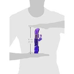 Pleasure yourself with a rabbit-style vibe that hits all the right spots! This dual stimulator provides 3 speeds of intense clitoral vibration, along with a wide variety of pulsation patterns. The flick of the bunny-shaped stimulator will drive you wild while the ribbed and bulging shaft massages you internally. The subtle curve provides G-spot stimulation and is instantly amplified when you turn on the rotation function. Three speeds of gyration will have your whole body in a frenzy! You can even make it rotate backwards. Both sensations can be operated independently with the control panel. Measurements: 8.75 inches in total length, 4 inches insertable. 1.5 inches insertable width. Material: TPE, ABS. Color: Purple. Note: Requires 4 AAA batteries, not included.