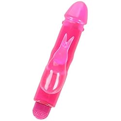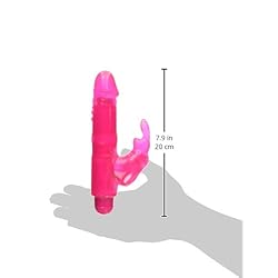 This rabbit vibe is packed with power! With adjustable speed vibration, you can go from oh to OHHH. Simply twist the knob at the bottom until you reach your desired level of stimulation. Enjoy blissful pleasure as the ears of the bunny dance across your pleasure spot. Compact and waterproof, you can take this orgasmic vibe practically anywhere! Measurements: 8.25 inches in total length, 5 inches insertable, 1.35 inches in diameter. Material: TPR, ABS. Color: Pink. Note: Requires 2-AA batteries, not included