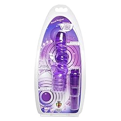 Give yourself the royal treatment with this textured double stimulator! This traditional pocket rocket has an exciting upgrade that gives you dual stimulation, inside and out. Just slip the rabbit style stimulator on top, and twist the base to get ultra strong vibration, right where you want it. The ribbed shaft is demurely sized, with a textured external stimulator that will carry the powerful vibration directly to your clit. Waterproof and phthalate-free, this compact toy is big on power yet perfectly sized for travel. Measurements: 8.5 inches in total length, 3.25 insertable, 1.15 inches in diameter Material: TPE, ABS Color: Purple Note: Requires 1-AA battery, not included