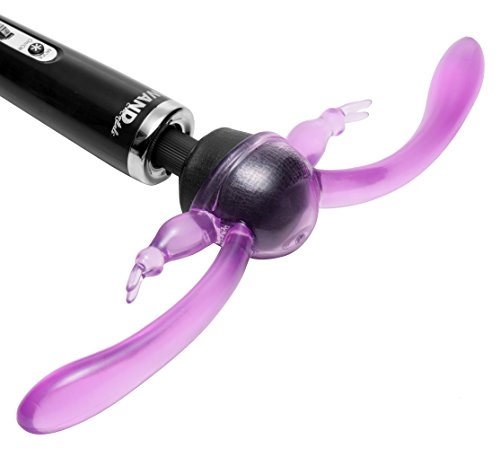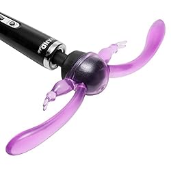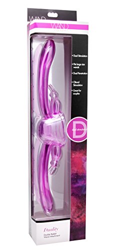 With the Double Rabbit Wand Attachment from Wand Essentials, you and your partner get double the pleasure! Uniquely designed with not one, but two penetrating rabbits! For the ultimate in clitoral stimulation, both penetrators feature sensuous bunnies on each side, to tickle and tease your sweet spot with scintillating vibration. Simply secure the attachment on the wand of your choice, and get ready to enjoy customized and incredibly powerful stimulation for twice the fun for you and your lover. Measurements: 15 inches in total length, each rabbit measures 4.25 inches insertable length and 1.45 inches in diameter at widest point, cup has a 2.3 inch inner diameter. Material: TPE. Color: Purple. Note: Fits standard size wand massagers, including Hitachi. Wand sold separately