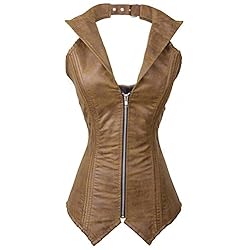 Charmian Women’s Steampunk Rock Retro Halter Spiral Steel Boned Vest Corset Top